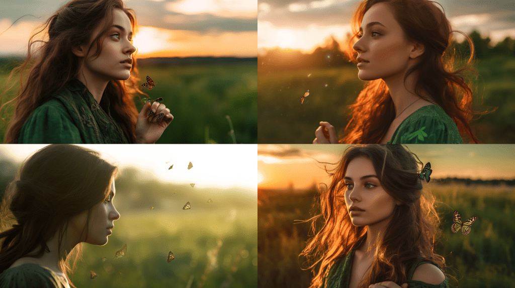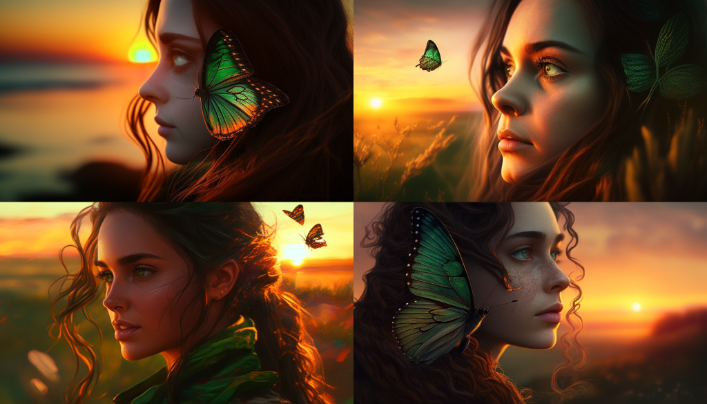 Version 5.1 also adds a raw mode ( using –style raw) which reduces some of the artistic expression and brings it closer to the prompts. In this, the woman is actually looking at the butterfly which was in the original prompt,
